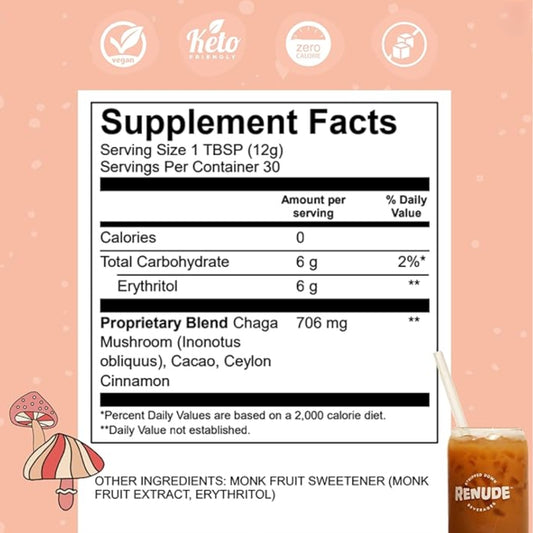 Renude Chagaccino - Café de hongos chaga silvestres, polvo de refuerzo de energía adaptógeno, belleza natural y apoyo inmunológico