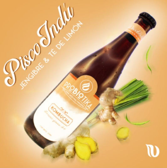 Kombucha PROBIOTIKA Pisco Indú (Jengibre y té de limón)