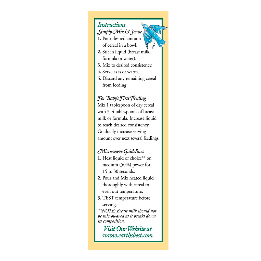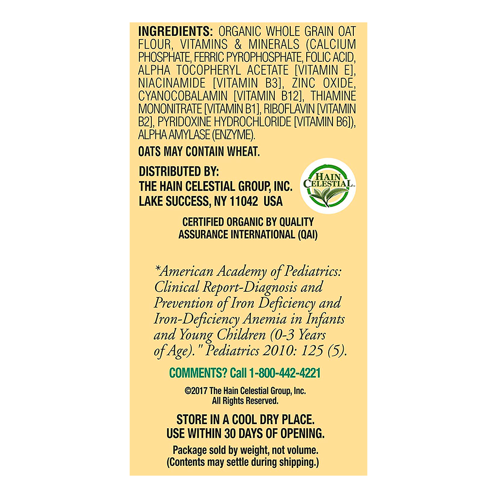 Cereal orgánico de avena para niños desde los 6 meses hasta los 3 años de edad. Es un cereal libre de microorganismos genéticamente modificados, enriquecido con vitaminas y minerales sin colorantes, saborizantes artificiales ni azucares añadidos.