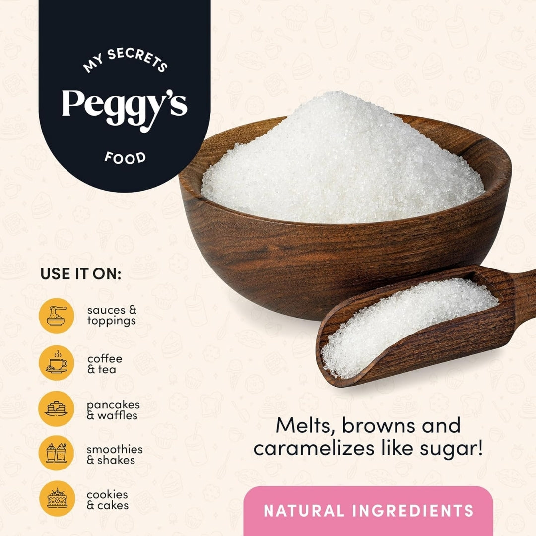 Reemplaza el azúcar en el café, té, batidos, productos horneados, salsas y comidas diarias. Se derrite, se mezcla y se dore como el azúcar, ayudando a crear un color y textura apetitosos en productos horneados, coberturas y salsas.