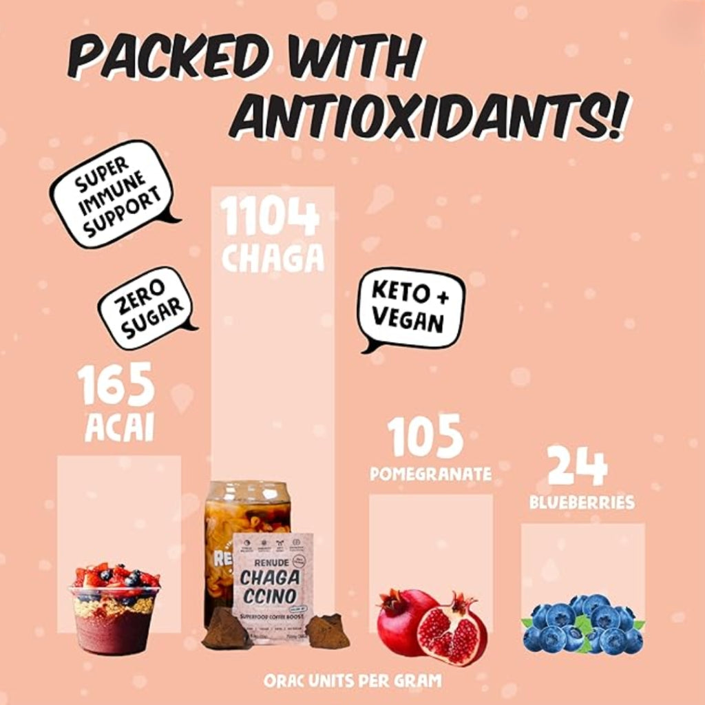 Renude Chagaccino - Café de hongos chaga silvestres, polvo de refuerzo de energía adaptógeno, belleza natural y apoyo inmunológico