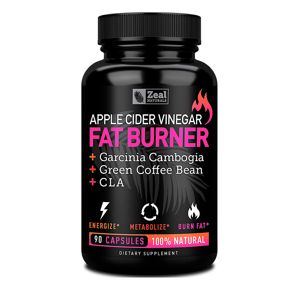 Vinagre de sidra de manzana con garcinia cambogia, grano de café verde y CLA en cápsulas de la marca Zeal Naturals. Es un producto 100% natural, libre de microorganismos genéticamente modificados y probado en laboratorio.
